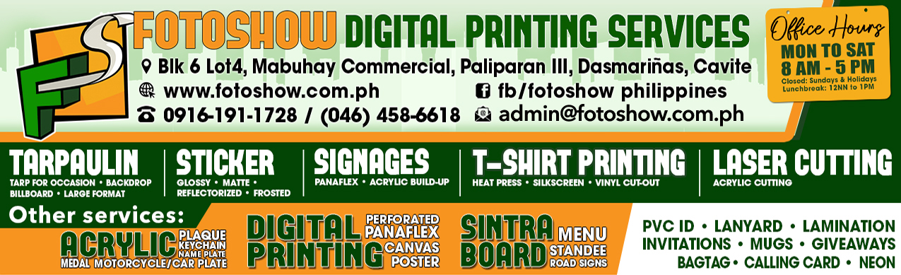(3) Or email us directly at inquiry@fotoshow.com.ph or call or text us at 0916-191-1728 or even call us on our landline at (046) 458-6618 .